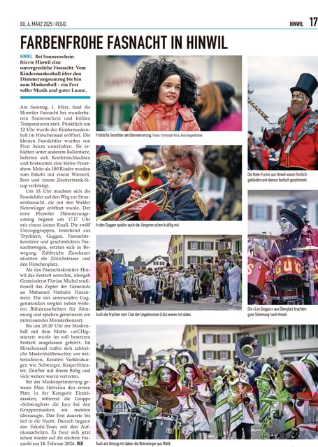 Und schon ist die Hinwiler Fasnacht 2025 wieder Geschichte. Und es bleiben tolle Erinnerungen und Fotos. Hier findet ihr unsere Bilder.