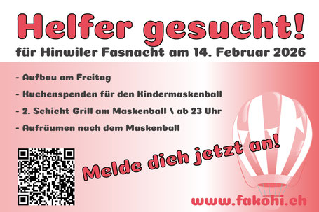 Für die Fasnacht 2026 sind wir noch auf der Suche nach ein paar Helfern.